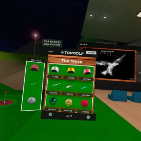 A really cool feature here is the ability to play various types of music or videos via the video player. This is a great relaxing way to get together with your oculus friends. Everyone can sit around, watch videos, play mini-games like cornhole or putt pong, and of course, play some Top golf. It’s almost like ‘real-life’ socializing. If you are looking for a fun party game with your friends, this is it.