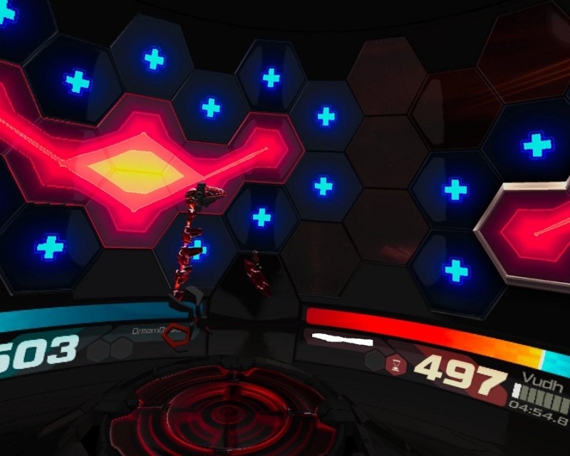 Racket NX is played inside a large dome. The walls light up with various targets and you need to destroy them with your ball and racket. If you hit the ball hard enough, it shoots across the dome-like a pinball, hitting various buffs and bumpers along the way. You pull the ball back to you with a kind of tractor beam.